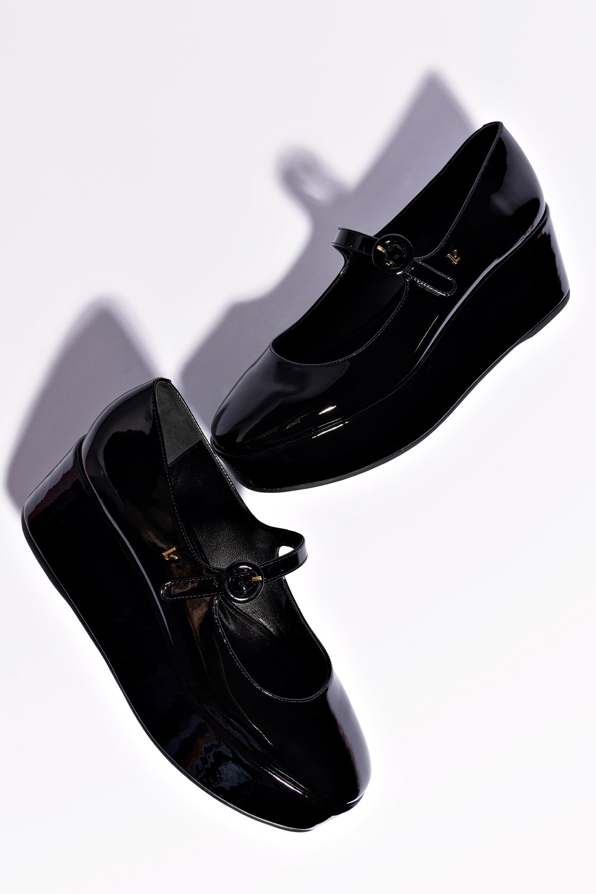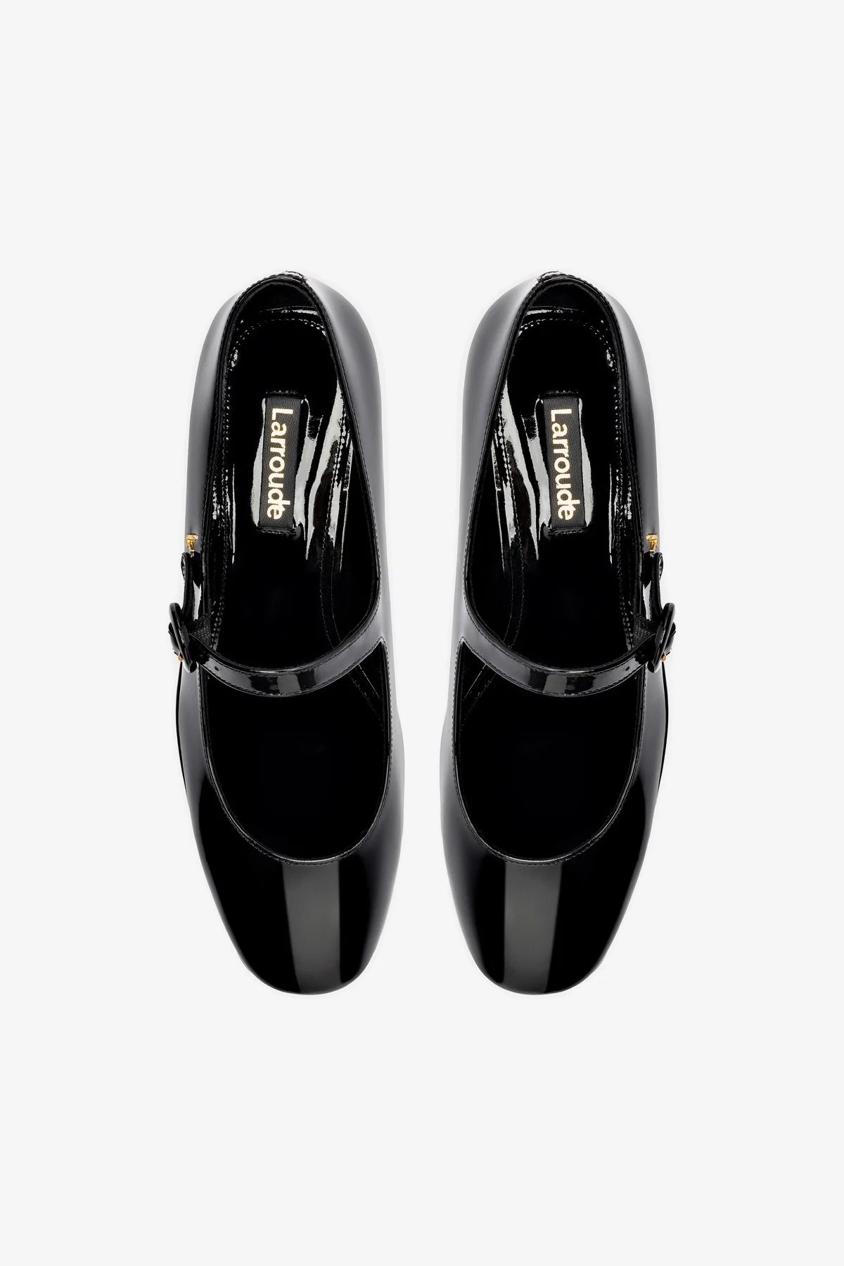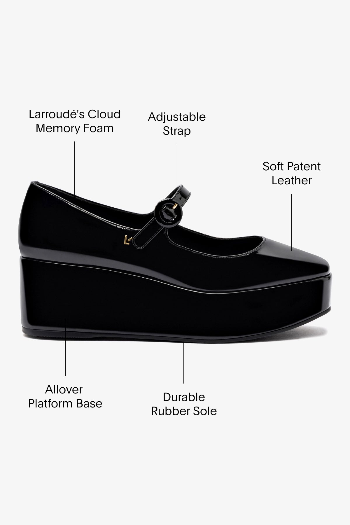 The newest member of the bestselling Blair family, this flatform adds an allover platform base to the mary-jane silhouette to bring added height—and appeal—to the original. BlackSoft patent leather2.4 inch platform Larroudé “L” logo in golden hardwareFinely crafted rubber sole for support, durability, and comfort Insole with memory foam cushion and hot stamp logo Handmade in Brazil