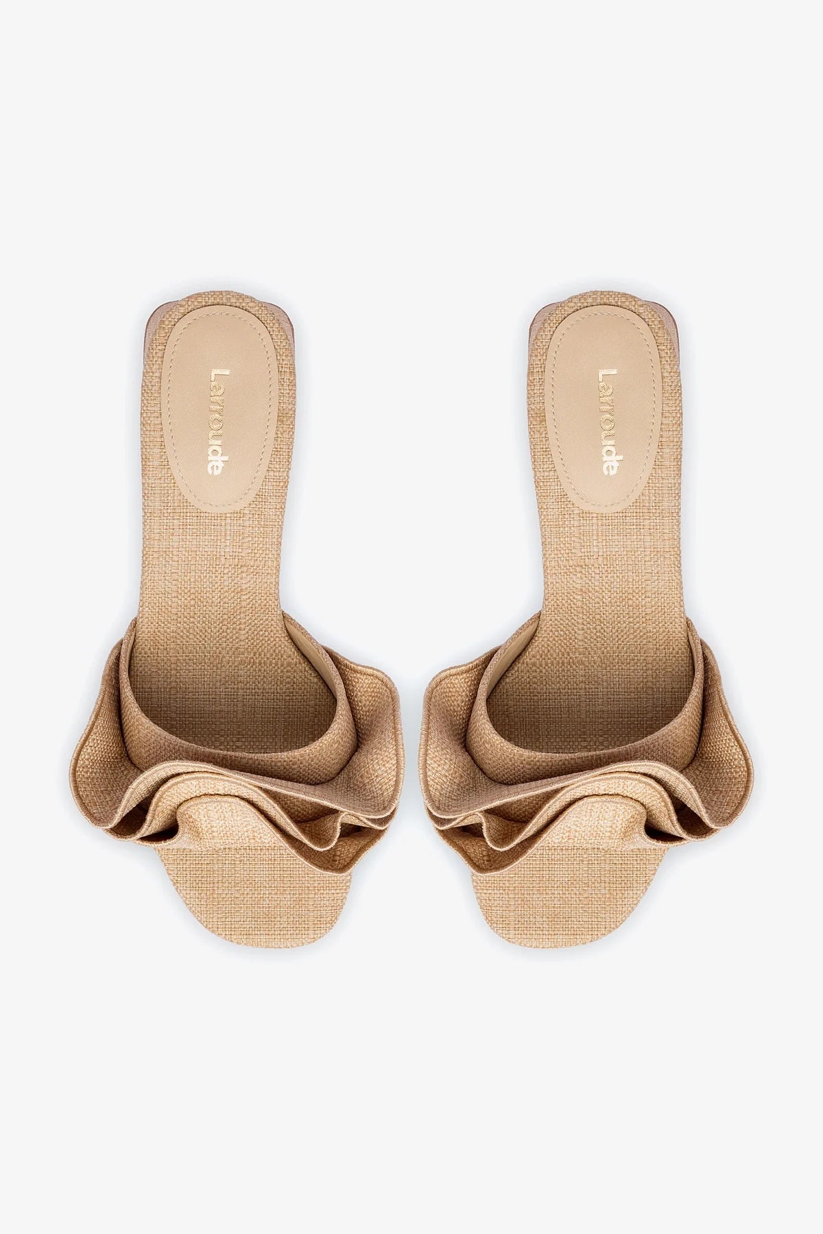 We’ve updated our favorite sandal with a little bit of the feminine flounce that the Resort season calls for. The top selling shoe sits atop a supremely comfortable block heel for ease of wear no matter the season with tonal ruffles that are begging for a warm weather Winter getaway. BeigeRaffia FabricOpen round toe1.8 inch block heelFinely crafted leather sole for support, durability, and comfortInsole with memory foam cushion and hot stamp logoHandmade in Brazil