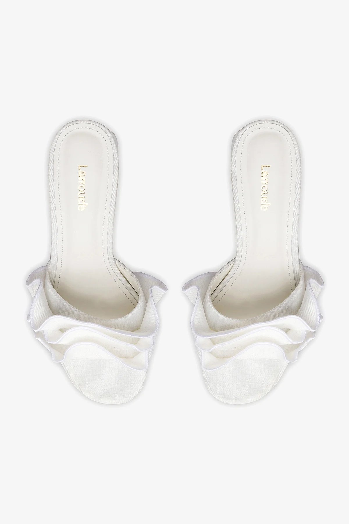 We’ve updated our favorite sandal with a little bit of the feminine flounce the season calls for. This top selling raffia shoe sits atop a supremely comfortable block heel for ease of wear with tonal ruffles that are begging for a warm weather getaway.White Light raffia fabric Open round toe 1.8 inch block heel Finely crafted leather sole for support, durability, and comfort Insole with memory foam cushion and hot stamp logo Handmade in Brazil