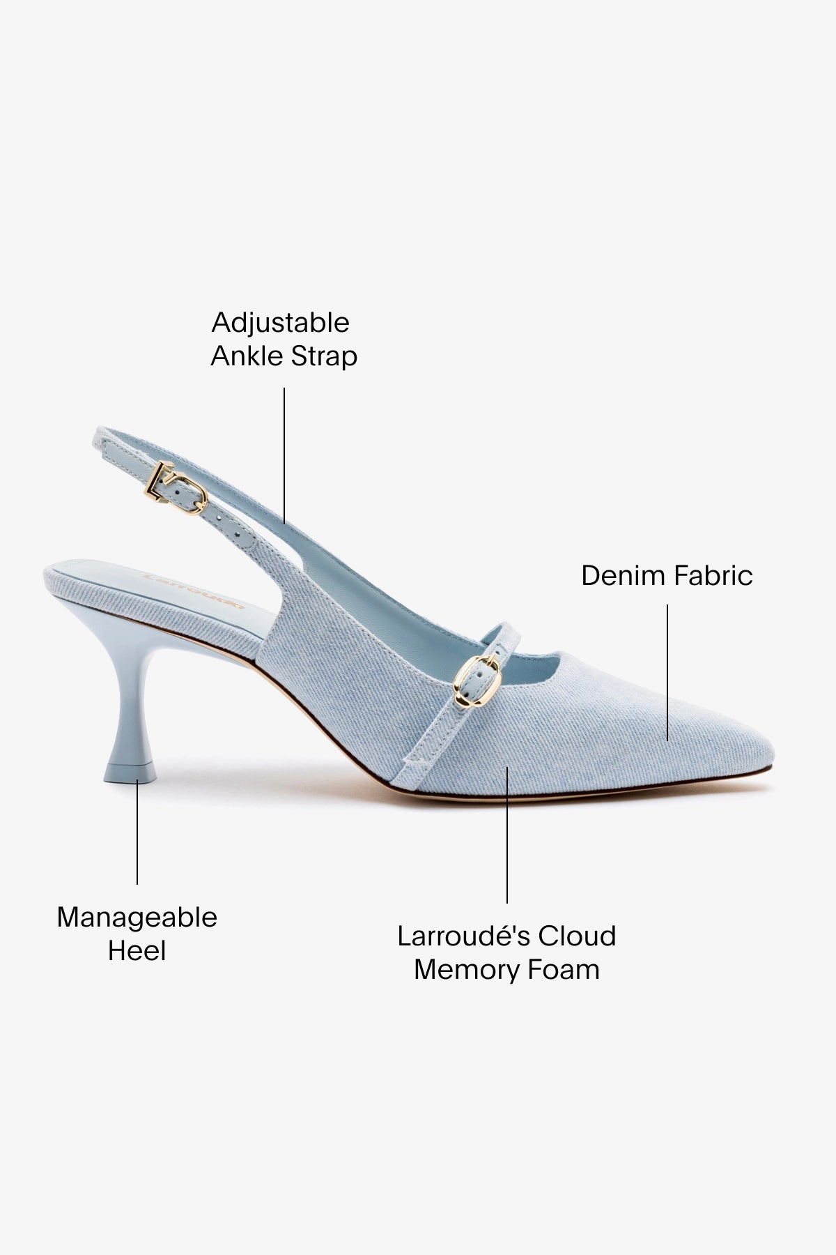 Straight off the runways, our new sleek Ines is just as chic as the woman who inspired it. Destined for the city streets of Paris—and comfortable and versatile enough to wear all year long with everything from jeans to dresses—these are the single pair that can take you from work to weekend and every step in between.MayaDenim fabricClosed pointed toe Adjustable ankle strap 2.5 inch stiletto heel Finely crafted leather sole for support, durability, and comfort Insole with memory foam cushion and hot stamp logo Handmade in Brazil